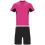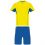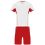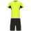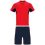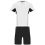 Conjunto deportivo unisex con combinación de tres tejidos, camiseta con cuello mao y apertura mediante broche de presión, interior de la manga en tejido transpirable y paneles laterales. Pantalón corto con cinturilla ajustable y cordones. Parte interior de la pierna y vivos a contraste en tejido.