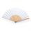 Abanico con varillas de madera y tela en poliéster.