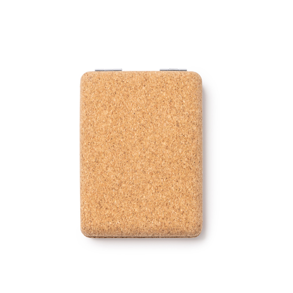 Espejo plegable de bolsillo elaborado en corcho natural con acabados en metal cromado, una opción elegante y sostenible. Este espejo tiene un diseño cuadrado y compacto, perfecto para bolsos, bolsillos o neceseres. Compuesto por un espejo normal y un espejo de aumento, brindando una imagen ampliada para detalles más precisos. Una opción más versatilidad en su uso.