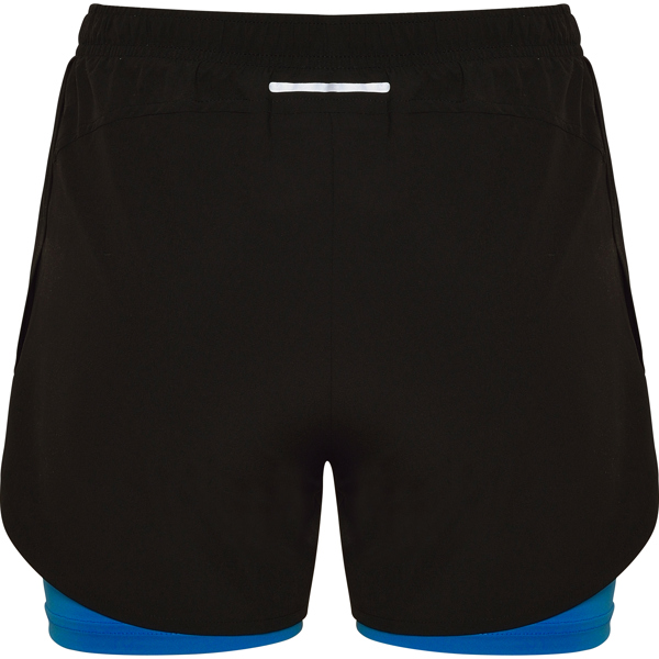 Pantalón corto running en tejido ligero y stretch. Malla elástica interior. Cintura engomada y cordón ajustable cruzado. Detalle reflectante en la parte trasera.