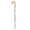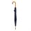 Paraguas con mango, bastón y terminaciones en madera. Varillas en negro y cierre con velcro en color a juego con la tela del paraguas. Cuenta con apertura manual y diámetro 105.