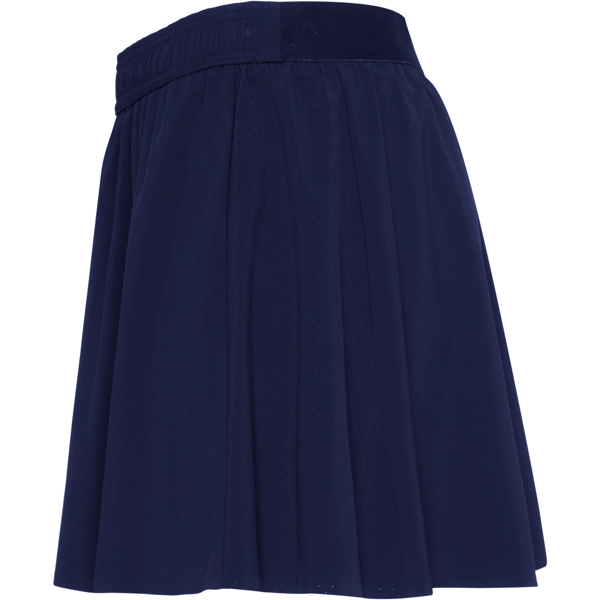 Falda pádel con short mujer. Tejido stretch ligero y microperforado combinado. Cintura con banda elástica en la parte trasera y cordón en la parte delantera. Bajo termosellado. Certificado GRS.